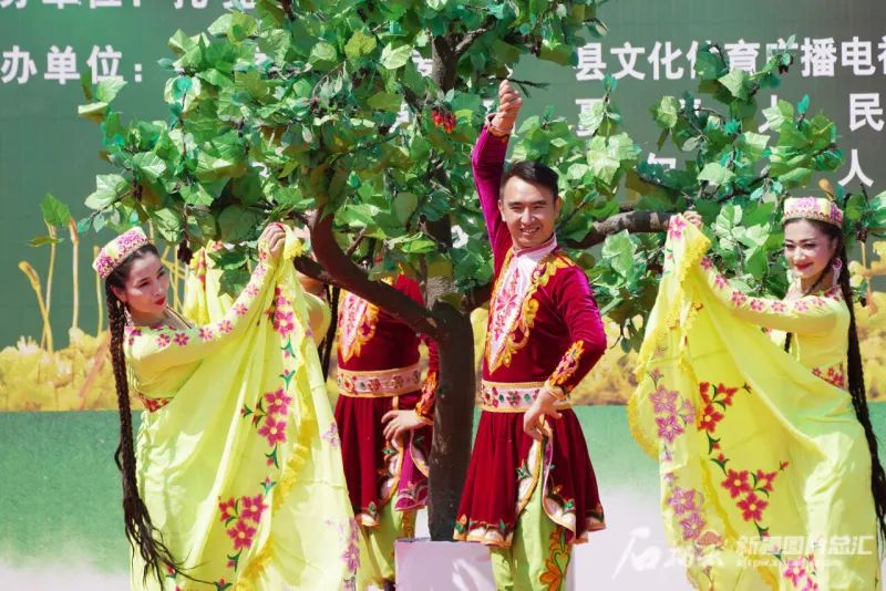 5月7日,托克逊县在郭勒布依乡开斯克尔村举办桑葚文化旅游节。图为演员在开幕式现场表演舞蹈。李靖海摄