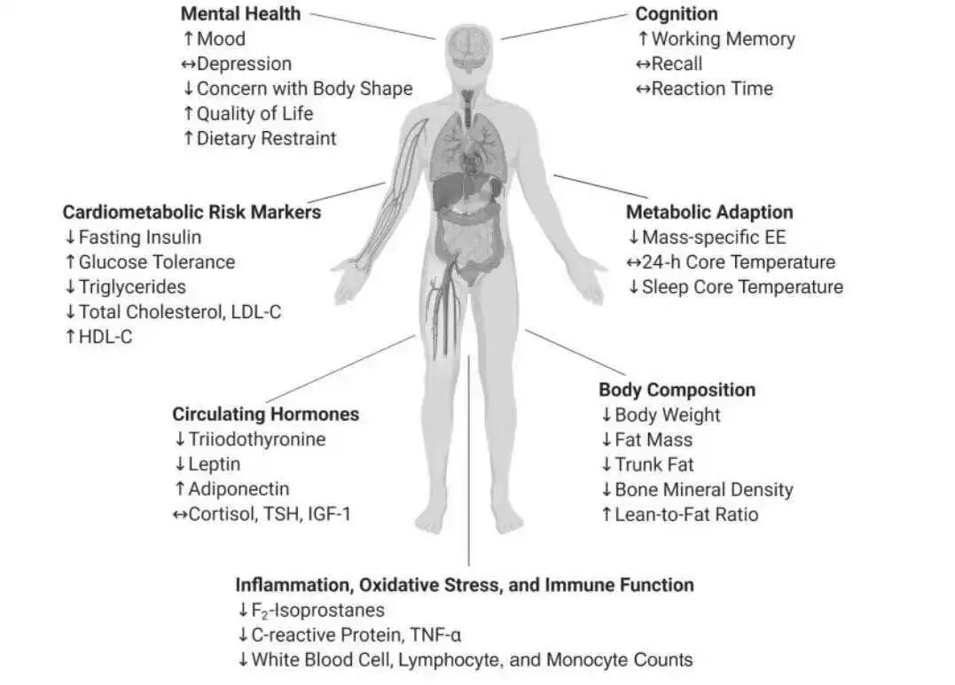 一项由美国国家衰老研究所和美国国家卫生研究院联合开展的、迄今为止最大规模的人体长期热量限制试验显示:在长时间(约2年)热量摄入降低14%的情况下,能够显著改善衰老标志物以及长寿预测指标。