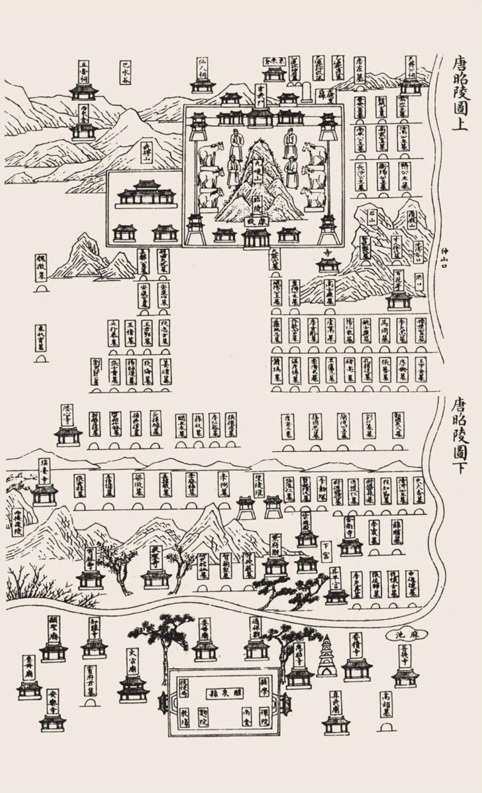 ▲唐昭陵图,出自元《长安志图》,图中可见大量陪葬墓。图源:网络