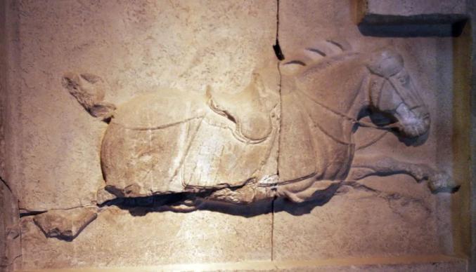 飒露紫石刻,有一人一马,再现邙山一战丘行恭阵中救主之举。