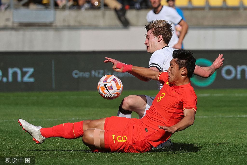 国足球员在比赛中。