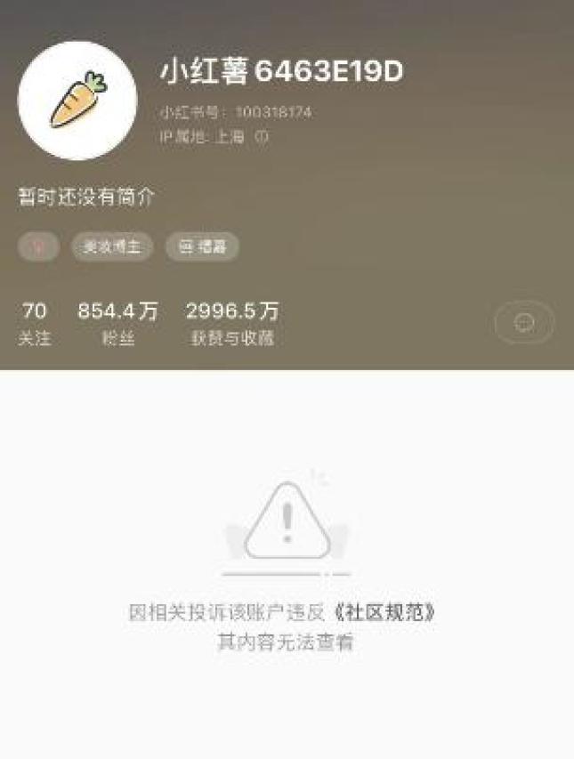 知名美妆博主@程十安an 小红书账号突然被封,该账号拥有800多万粉丝,目前页面显示因相关投诉该账户违反《社区规范》,其内容无法查看。