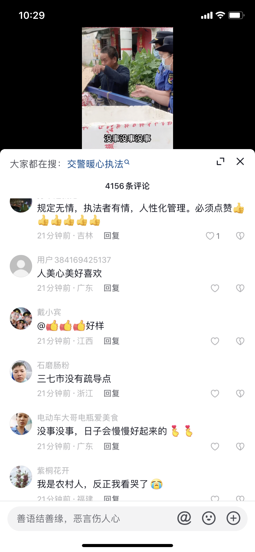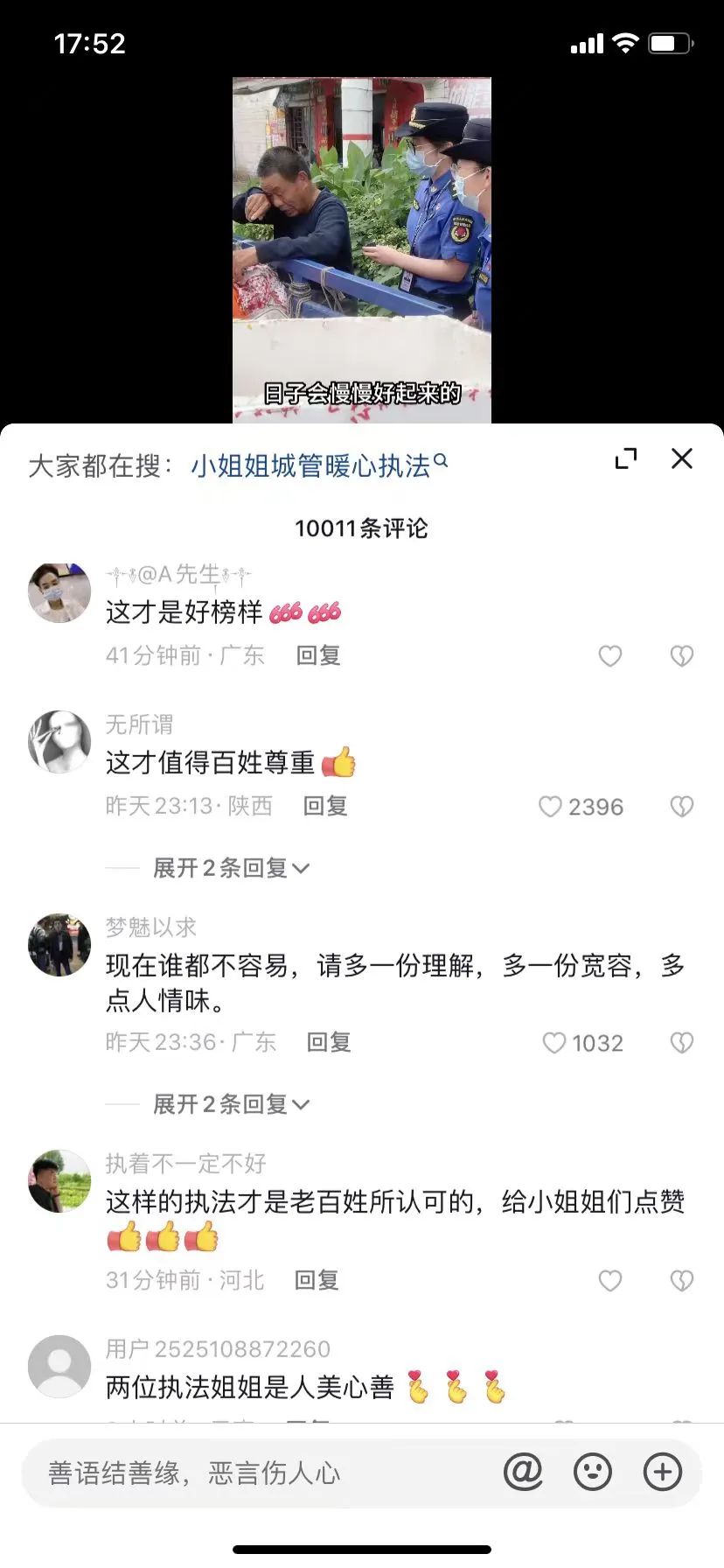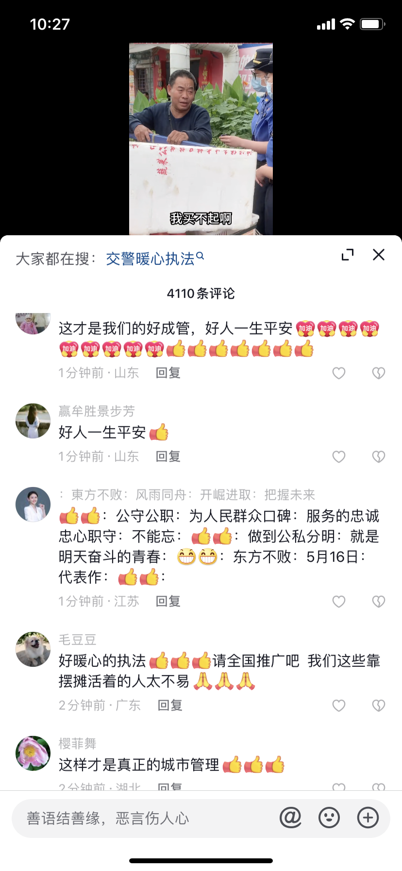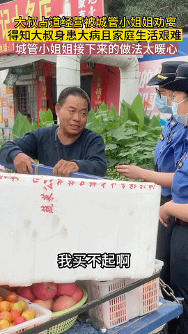 她们发现大叔腿脚不便后,还细心帮忙把推车推到旁边的临时疏导点