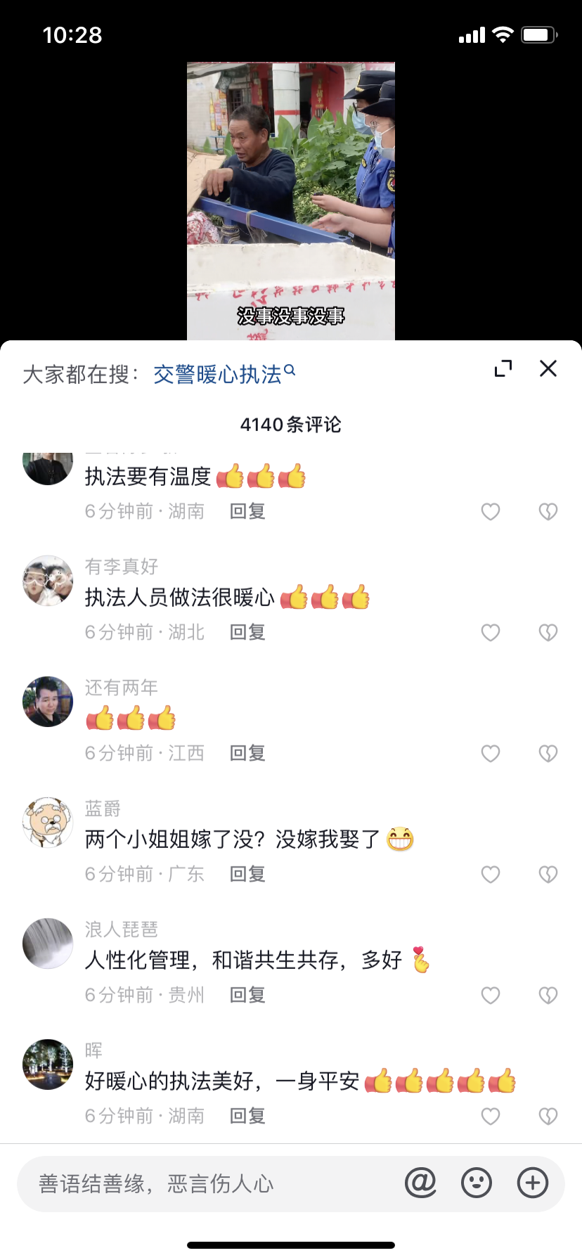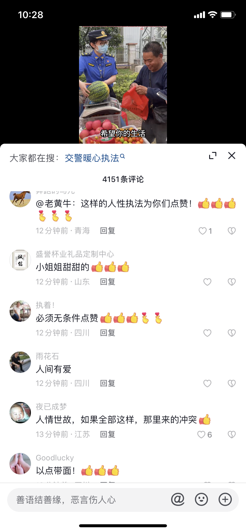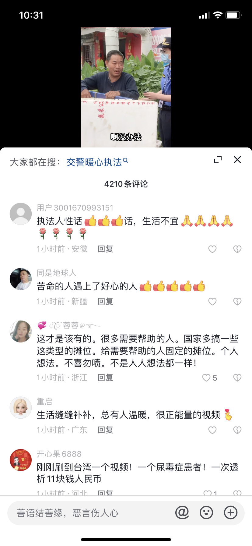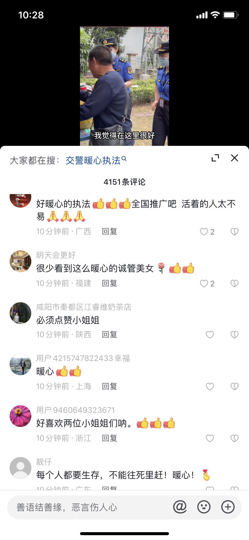 她们发现大叔腿脚不便后,还细心帮忙把推车推到旁边的临时疏导点