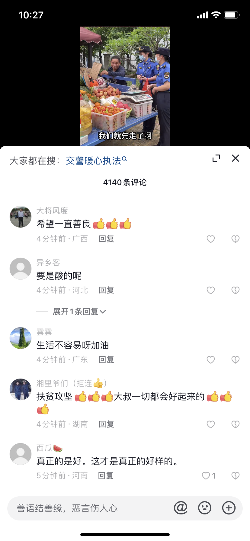 “大叔现在的生活可能不太如意,他妻子得尿毒症去世了(当时治疗花了几十万),自己得了很重的病也花了几十万,但交流的时候我感觉他的生活态度其实非常积极,我就想鼓励一下他,所以说了那句‘希望你的生活像西瓜一样甜’。”