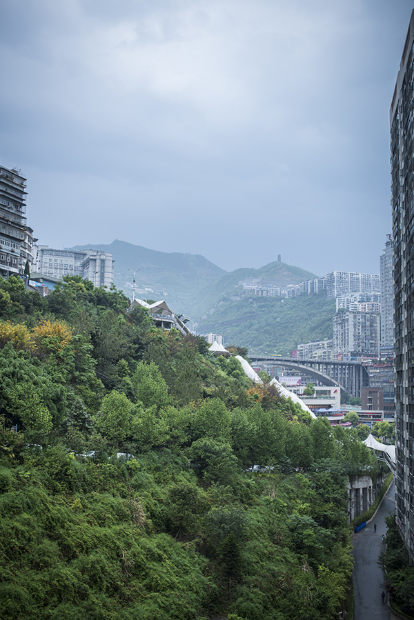 三峡蓄水,搬迁后的奉节新城成了一座立体的城市。空中人行道、水泥吊脚楼随处可见,无数的暗门上上下下。夜幕降临,似乎置身一座赛博朋克般的淡紫色寨城。去肖代明的家,要从一栋商务大厦坐电梯到13楼,通过一个空中走廊来到彩云公园,肖代明就住在彩虹公园顶上一幢十几层的老楼上,楼梯是折叠向上的,中间一个狭窄的天井。肖代明和他九十一岁的母亲以及妻子生活在一起,由于空间局促,他将阳台改造成工作间,街道的车声、卖场的高音喇叭和他工作时的声音时常交织在一起,难以想象,他是如何避开这个复杂的世界,专心于这项古老的木器制作上的。