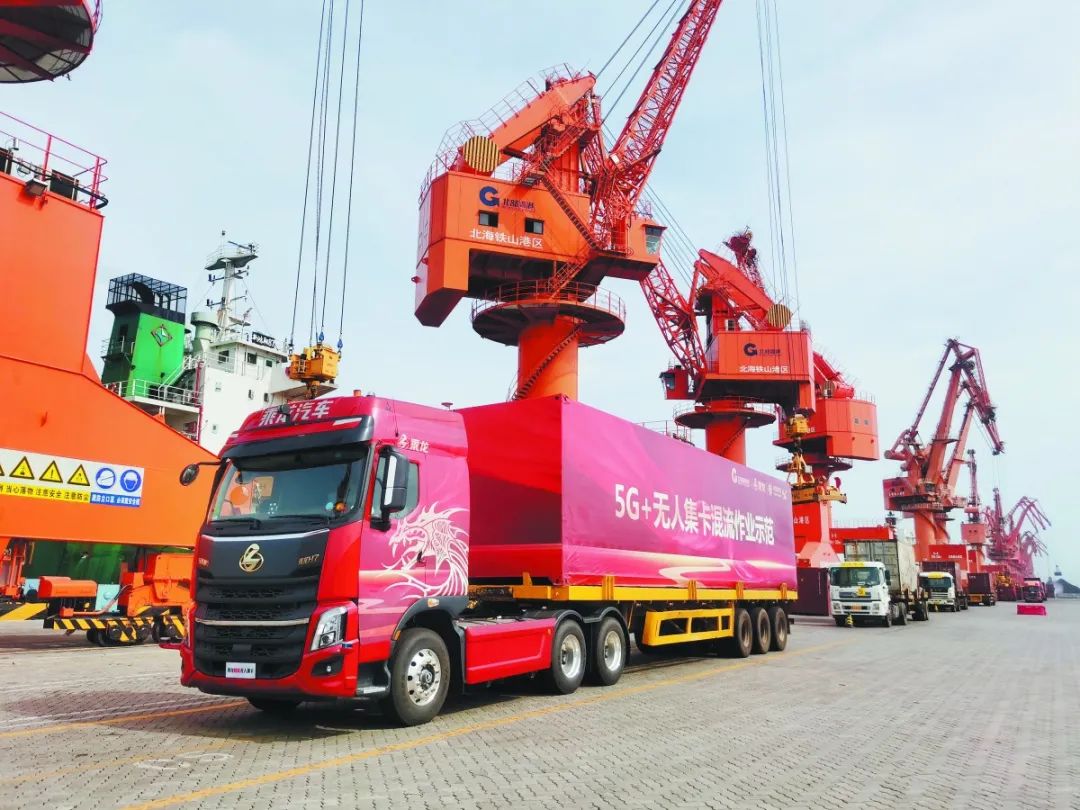 资料图:广西首个5G+无人驾驶集装箱卡车作业港口项目落地北海铁山港区。刘敏 摄持续强化信息通信基础设施绿色低碳发展