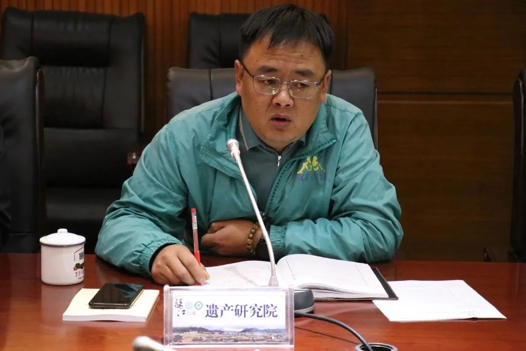 会上,丽江古城遗产文化研究院院长施寿增介绍遗产保护现状。丽江古城保护管理局保护建设科科长赵晓俊介绍了《世界文化遗产丽江古城修建活动“联审联管”工作制度》及成立专家库相关情况。