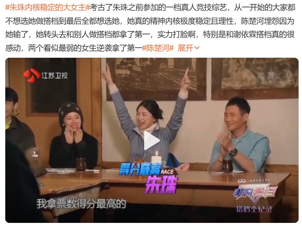 因为节目竞技属性强,朱珠起初并未适应主题,与一心求胜的陈楚河不同频。