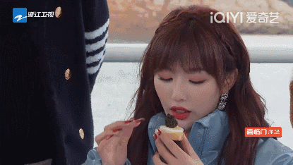 她试着按指导方法去吃,但几番犹豫、调整后,选择了直接咬下。