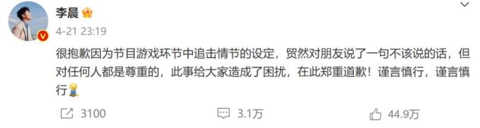 同时,网友们也不再满足于考古平反。不久前,李晨就因在节目中称「女生是累赘」引发争论而发文道歉。
