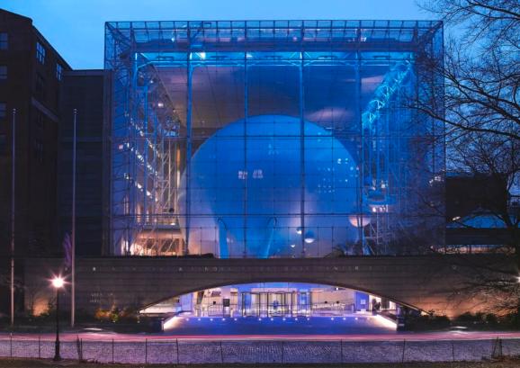 D. Finnin/©AMNH;https://www.amnh.org/在太空方面,罗斯地球和太空中心(rose center for earth & space)是最重要的展览。该中心迷人的玻璃外立面超凡脱俗,里面是太空展馆和天文馆。由天文学家尼尔·德·格拉斯·泰森(neil de grasse Tyson)担当独白的电影《黑暗宇宙》(Dark Universe)探索宇宙的神奇与奥妙,影片几乎全天每隔半小时就会播放一次。