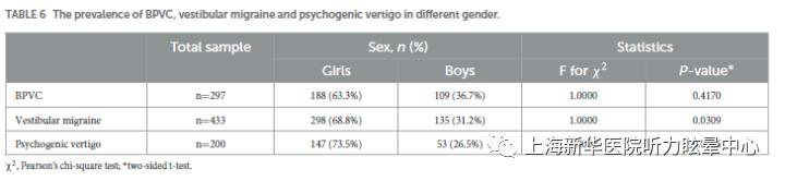 表5 性别因素对于BVPC、前庭性偏头痛和精神心理性眩晕的影响结 论