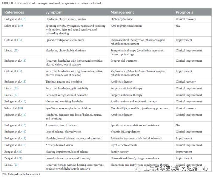 表6 被纳入研究中儿童眩晕的症状、处理和预后杨军教授团队通过对儿童眩晕常见的病因、影响因素以及处理进行系统评价和荟萃分析,从循证医学角度为临床医生诊断和治疗儿童眩晕提供了数据支持和参考。精准诊断是精准治疗的前提,随着对儿童眩晕疾病认识的深入,对儿童眩晕的诊疗水平将不断提高。