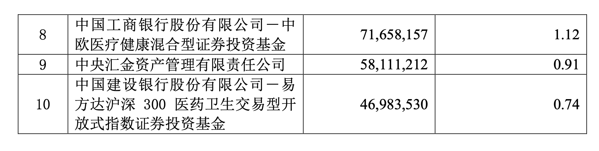 公告内容显示,葛兰管理的公募基金中欧医疗健康混合型证券投资基金(简称“中欧医疗健康”),继续位列恒瑞医药第八大股东,持股数量为7165.82万股,占总股本比例为1.12%。