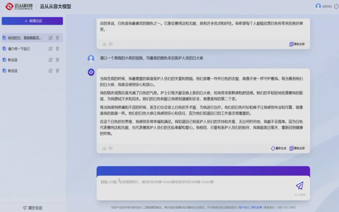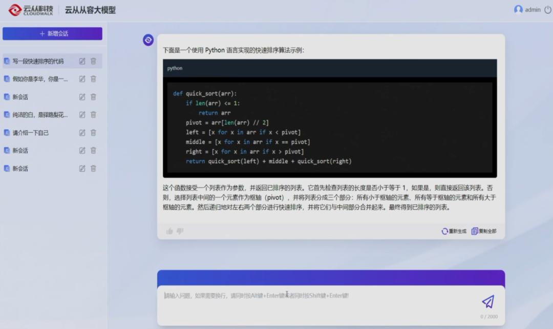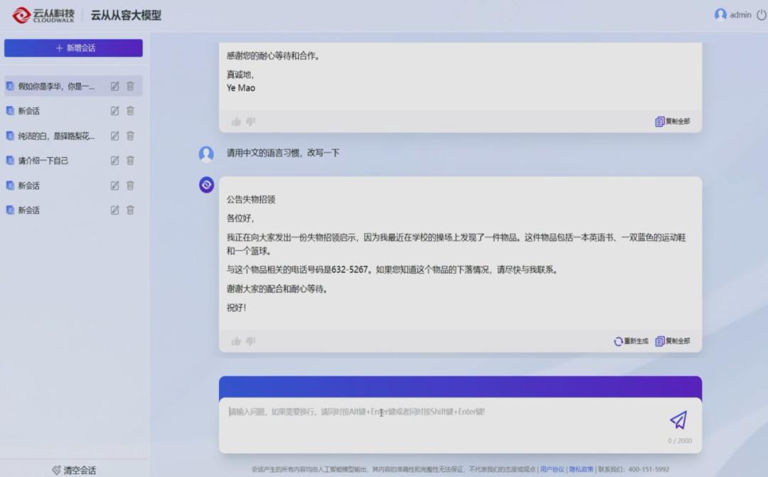 这也是云从一直以来发展 AI 技术的思考方式。「从容」大模型能否做到这一点?在活动现场,云从展示了从容大模型的问答、写作、代码、多语言、多模态等能力。