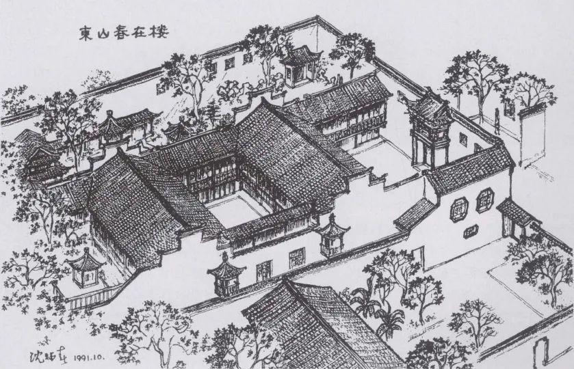 图为园林规划师沈炳春手绘的《东山春在楼》,其中的树木依稀可辨