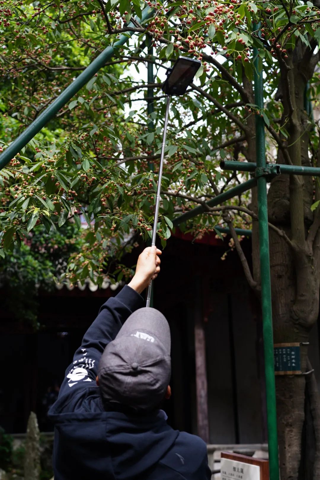 据雕花楼景点部经理施雪荣介绍,近几年风调雨顺,孩儿莲长势较好,景区亦注重对树木进行养护,定期“体检”。孩儿莲旁,一株编号吴中336的圆柏挺拔而立,历经200多年风雨,仍旧英姿勃发。它与孩儿莲的枝条交叉错杂,沐浴着阳光,投下片片斑驳的树影。