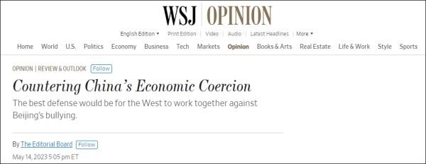 《华盛顿邮报》则急着“下注脚”,认为拜登此次出席的是有关“中国经济胁迫问题”的G7峰会;《华尔街日报》5月14日更是发表题为“反击中国经济胁迫”的社论文章,声称西方最好的防御措施就是共同努力反对中国的“欺凌行为”。