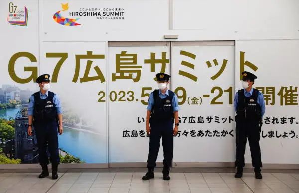 当地时间5月18日,日本广岛,日本G7峰会即将举行,警察在G7峰会的宣传海报前巡逻。图自IC photo据报道,此次G7峰会上,另一个有待观察的细节是,针对中国的措辞会有多直接。此外,尽管美国在推动加强对华投资限制方面冲在前列,但部分G7国家对签署限制对华投资的协议也抱持怀疑态度,比如德国和日本。