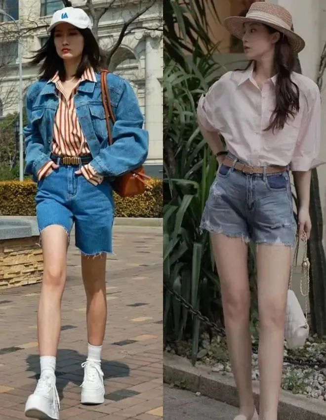 牛仔短裤相对来说比较日常,基本上也是人手一件,穿搭门槛和选品门槛都没有特别的高。
