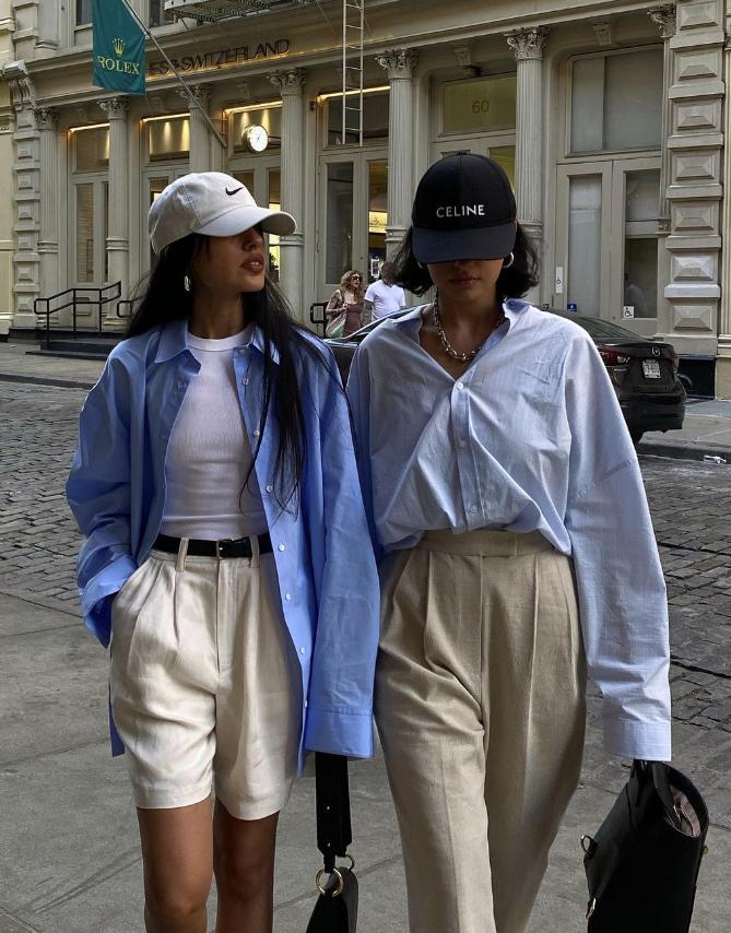 把白衬衫当外套穿,内搭运动吊带和短裤,秒变清新休闲风。不想费心想搭配的话,直接穿一套休闲运动装就OK。