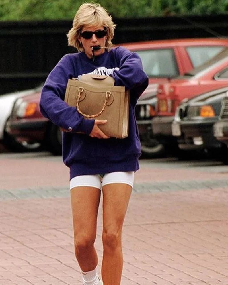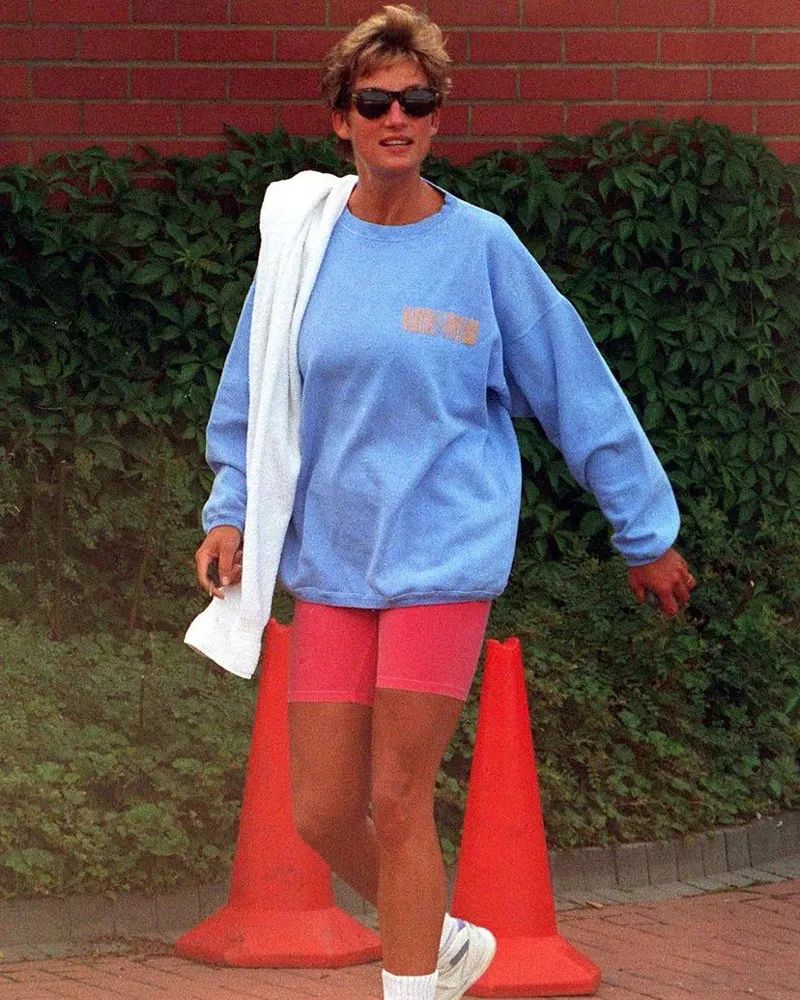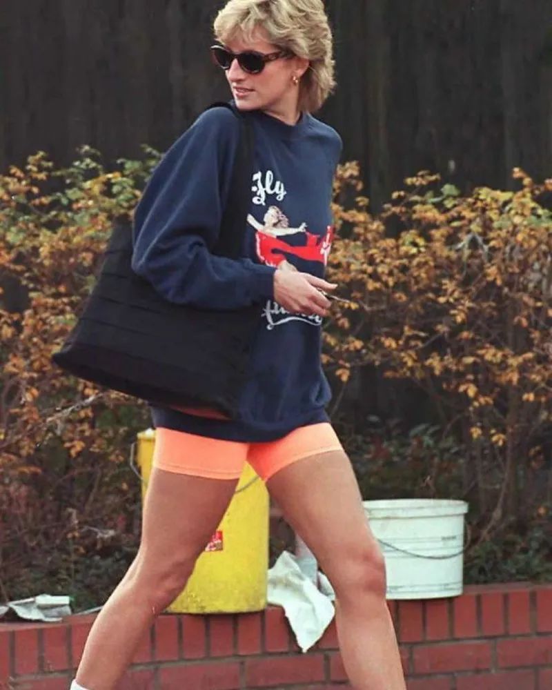 戴安娜王妃也很青睐骑行裤+卫衣这种穿搭。