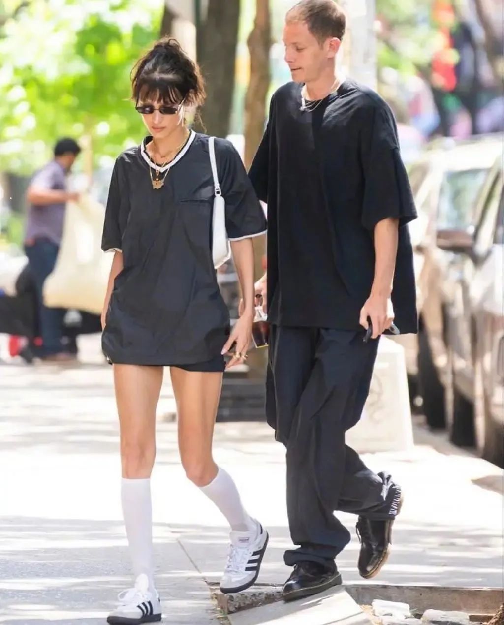 Bella则把运动装穿出了“时髦知识分子”的气质,配合眼镜链、金丝眼镜、黑框眼镜和LV老花包,全身上下都散发出精致复古调性。
