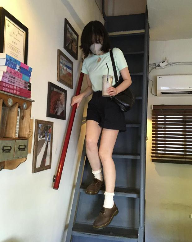 通过穿搭相对的消弭这些弱势,图中的博主侧面看起来也是所谓的“肌肉腿”,但是并不妨碍她的穿搭美丽而又自信~