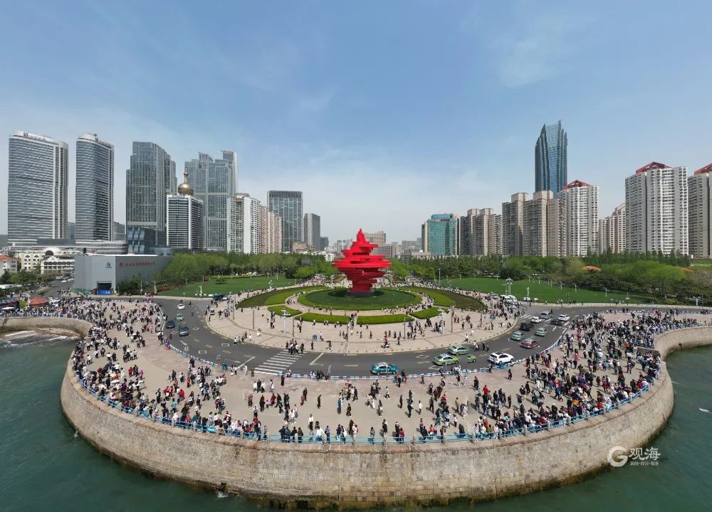 五四广场海滨一线吸引众多游人观光打卡。图源:观海新闻首批中国优秀旅游城市、