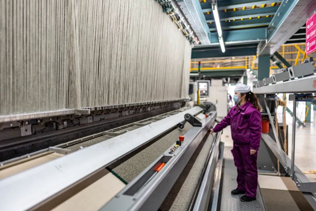 走进圣源地毯,规模化的厂房里机器不停运转,条条细线在大型织布机的牵引下,正完成它们的特殊使命。从原材料筛选、把关到纺纱、漂染、制作,每一道工序都要求“精和美”,为了让古老技艺更好地走进现代生活,圣源地毯不断创新,融合现代地毯编织手法与手工枪刺编织技艺,让每张地毯以“工艺品”的标准出厂。