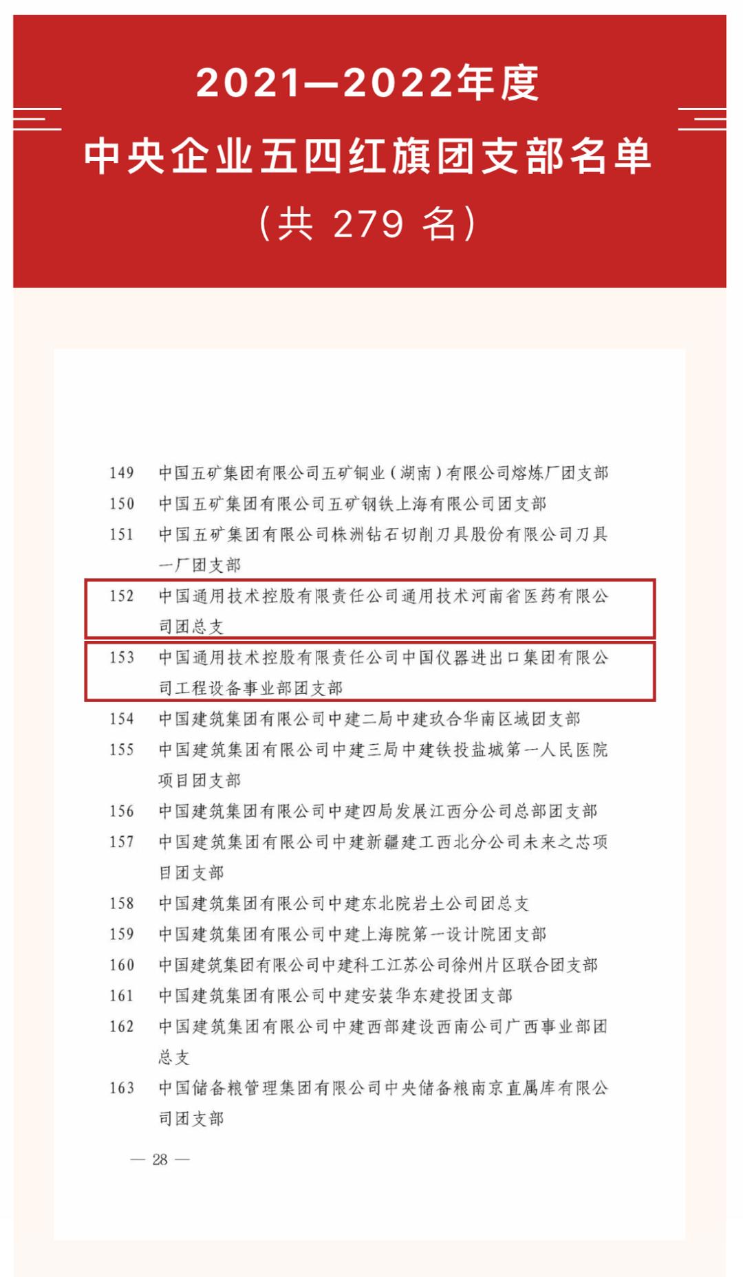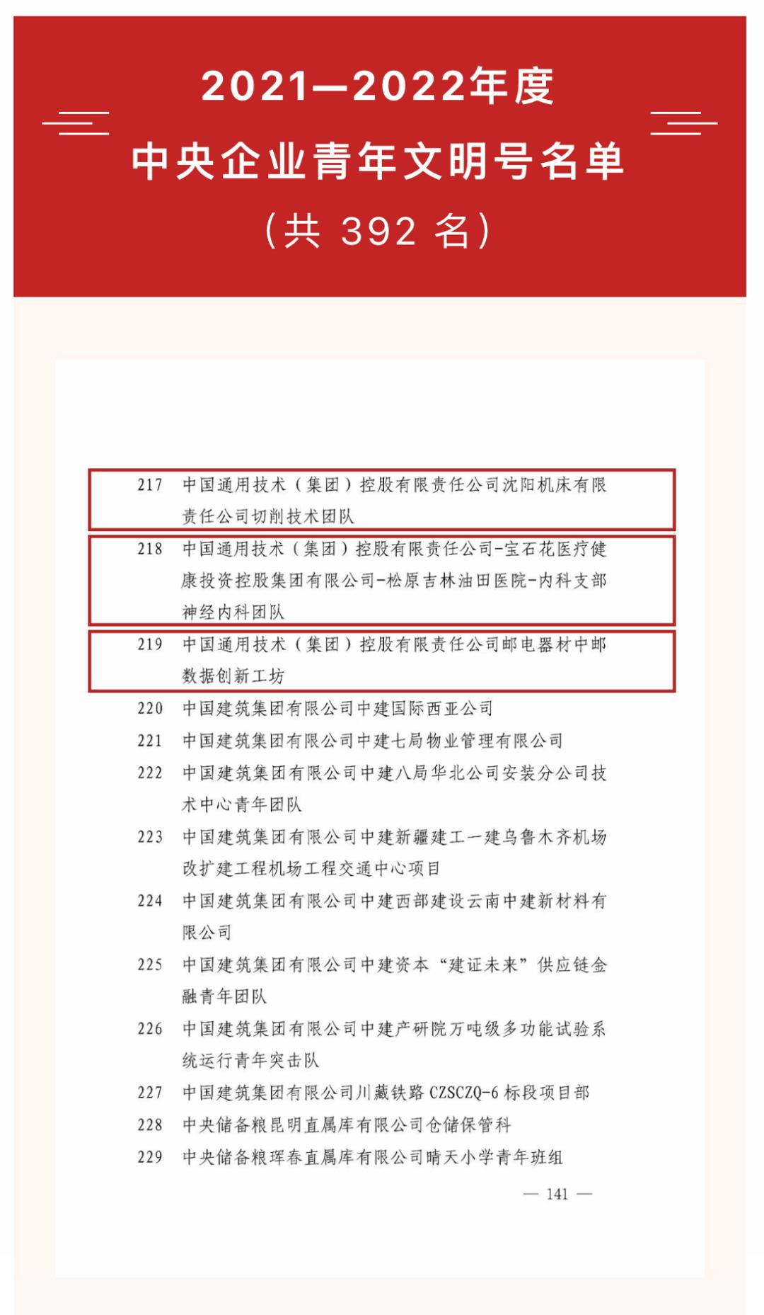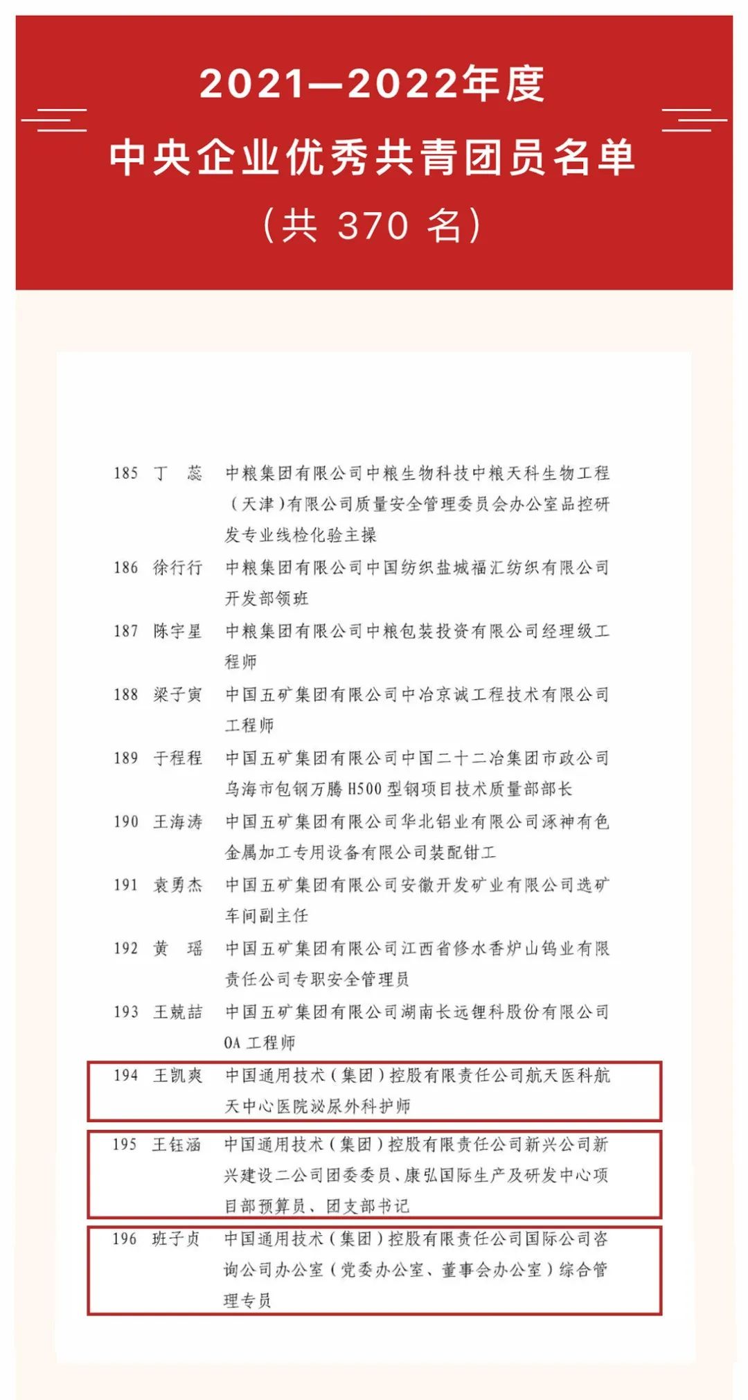 近日,中央企业团工委印发《关于表彰2021—2022年度中央企业五四红旗团委、五四红旗团支部、优秀共青团员、优秀共青团干部、青年岗位能手,命名中央企业青年文明号的决定》,通用技术集团共有6个青年集体和7名个人荣获表彰。