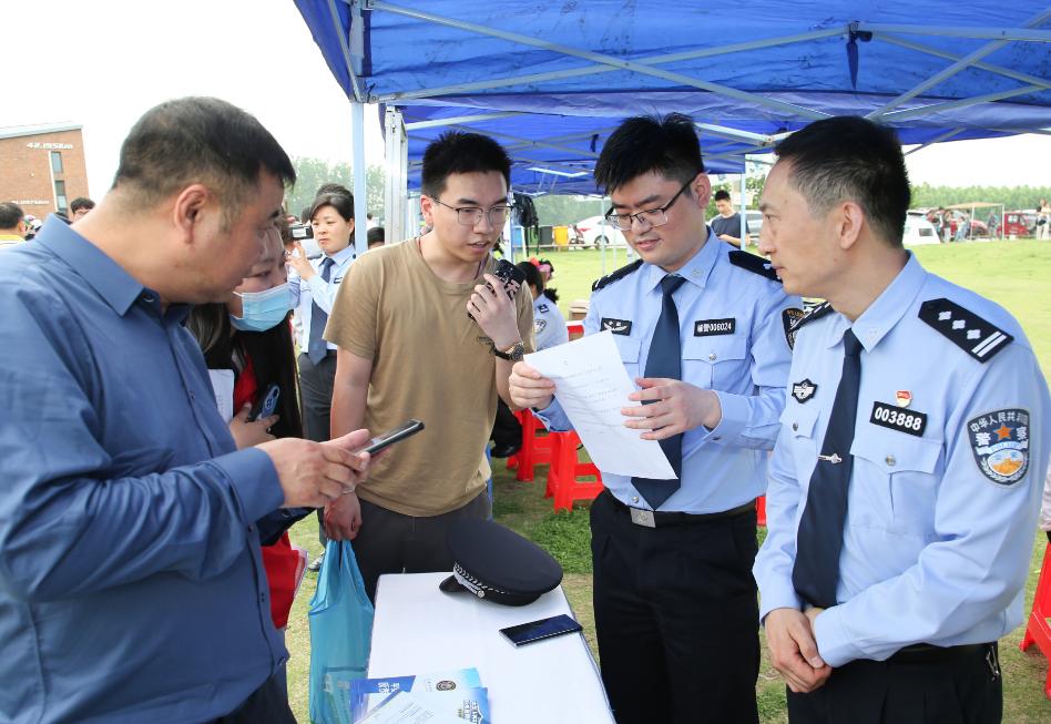 在舞台两侧,合肥市公安局交警支队、经侦支队、禁毒支队及刑警支队分别设置了交通安全、防范经济犯罪、防范电信网络诈骗及禁毒知识问答宣传展板,吸引了现场观众驻足观看、踊跃参与。