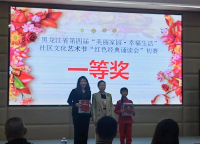 近日,在全省第四届“美丽家园·幸福生活”社区文化艺术节红色经典诵读活动七台河分赛中,市妇女儿童文化活动中心朗诵班学员赵奕凝荣获儿童组第二名、张洪伟荣获成人组优秀奖、孟丹荣获第一名,喜人的成绩受到市领导的一致好评。这来之不易的成绩也离不开朗诵教师汪老师为参赛选手精心挑选《红高梁》《生命的冰雕》《鸡毛信的故事》等优异的作品,并延时加点为参赛选手们进行一一指导。