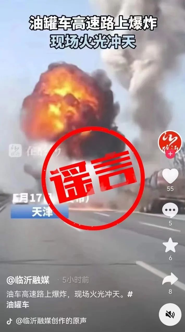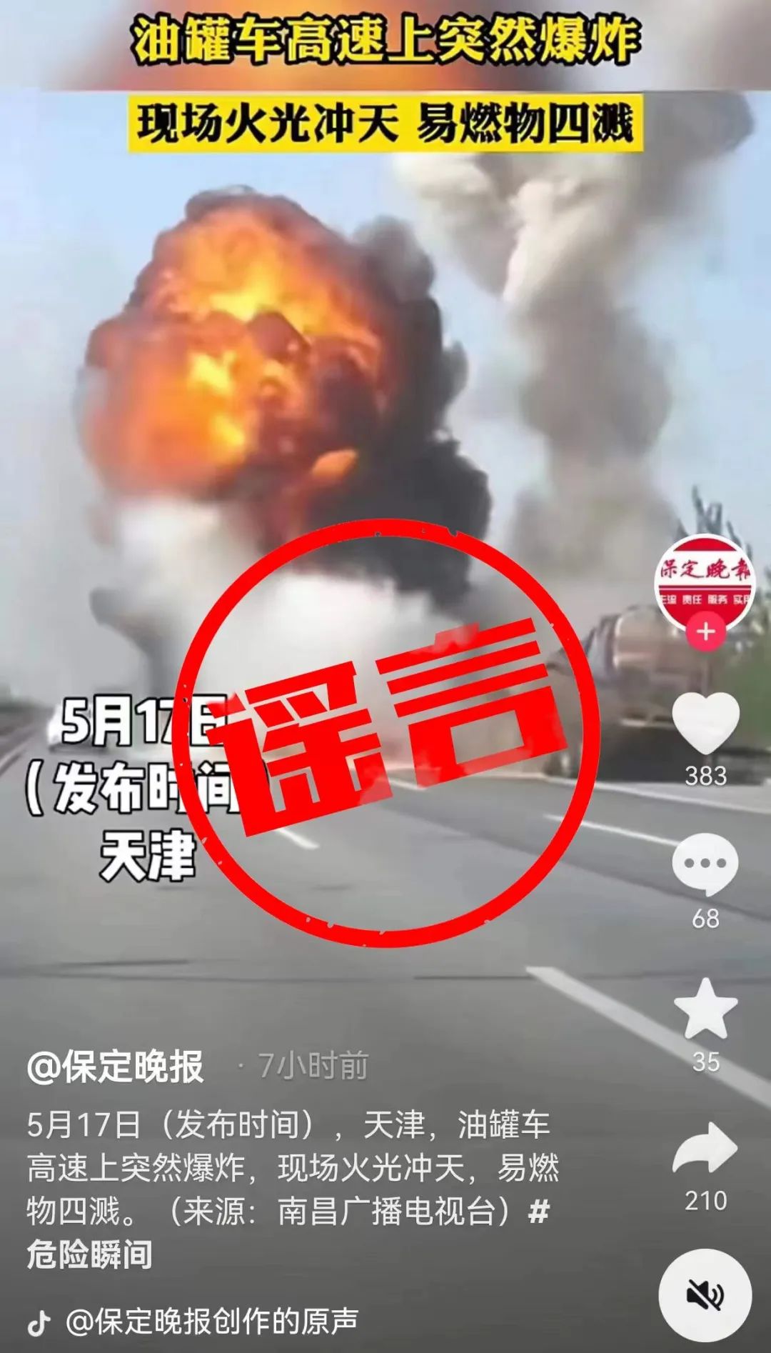 原标题:《辟谣 | 天津一油罐车高速路上爆炸?回应来了→》