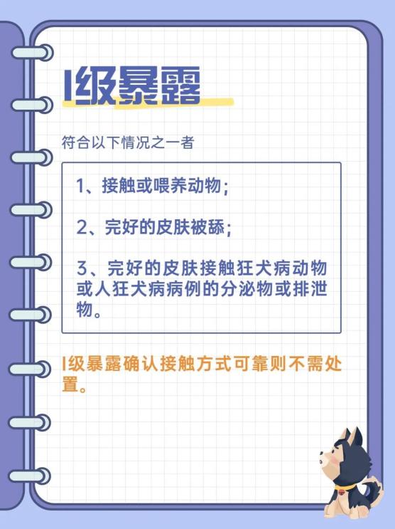 按照暴露性质和严重程度将狂犬病暴露分为三级: