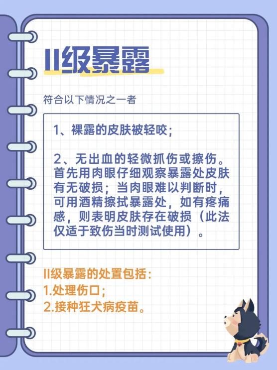 当处于II级暴露时,需要立即处理伤口+接种狂犬疫苗。