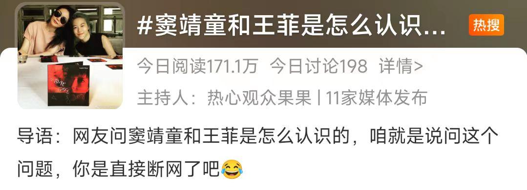 能问出这种高水平问题,只能说这届网友是懂流量密码的。果不其然,没多久,#窦靖童和王菲是怎么认识的#这一话题就飚上了高位热搜。