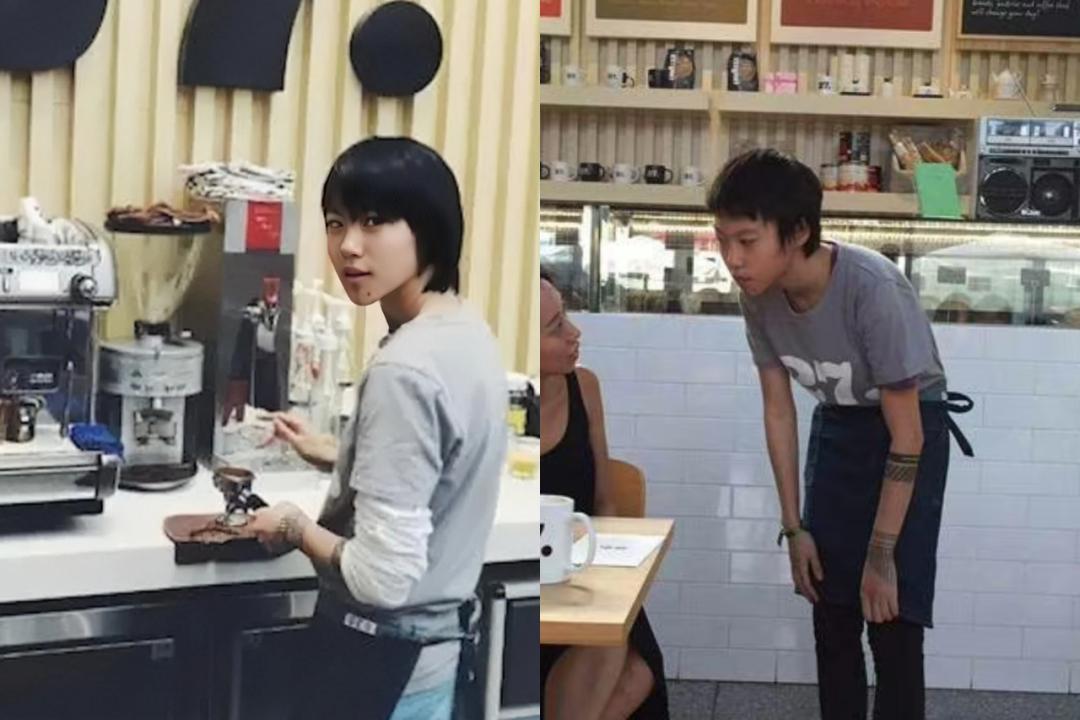 以前刚尝试独立的童童,还在咖啡店打工赚生活费,顾客面前弯着腰笑脸相迎,姿态看不出一点别扭。