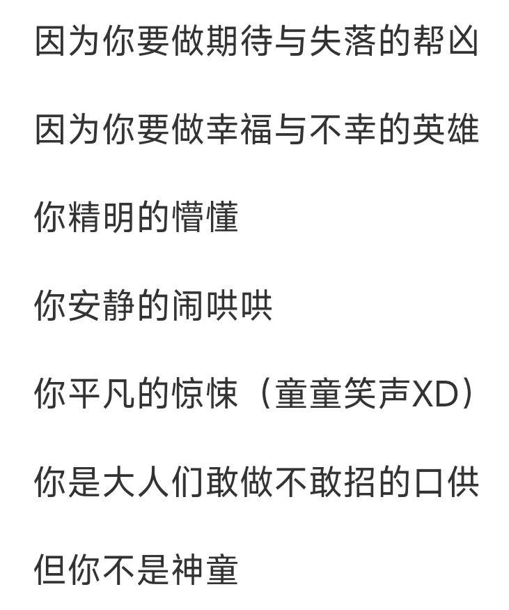 她对童童的期待早就在多年前为女儿而作的歌《童》中唱得清清楚楚: 你不能去学坏,你可以不太乖。