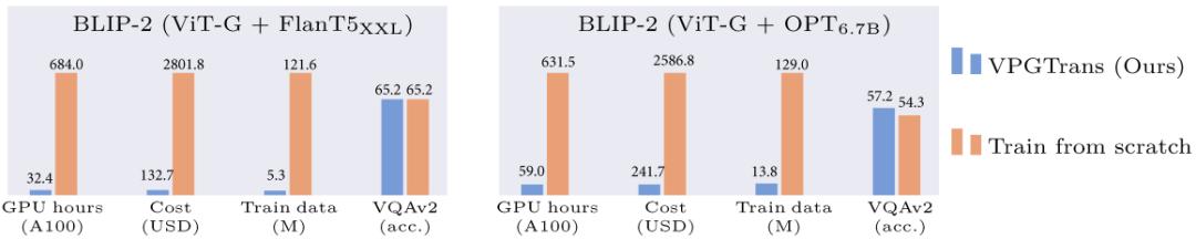 摘要:本文提出的 VPGTrans 方法,可以快速 (少于 10% 训练时间) 将已有的多模态对话模型的视觉模块迁移到新的语言模型,且达到类似或更优效果。比如,相比于从头训练视觉模块,本文可以将 BLIP-2 FlanT5-XXL 的训练开销从 19000 + 人民币缩减到不到 1000 元: