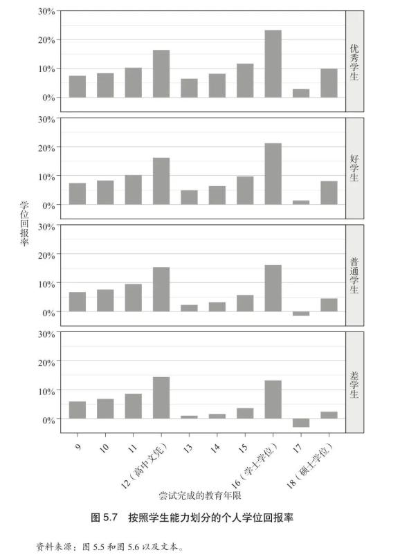 为什么要单独把“好学生”拎出来说?卡普兰无奈表示,教育对“中等学生”(排在第41个百分位)的回报并不丰厚,更不用说“差学生”(排在第24%个百分位)了。