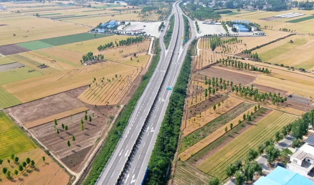 北方某地高速两侧部分残存的绿化树木散落在麦田里 郝源 摄