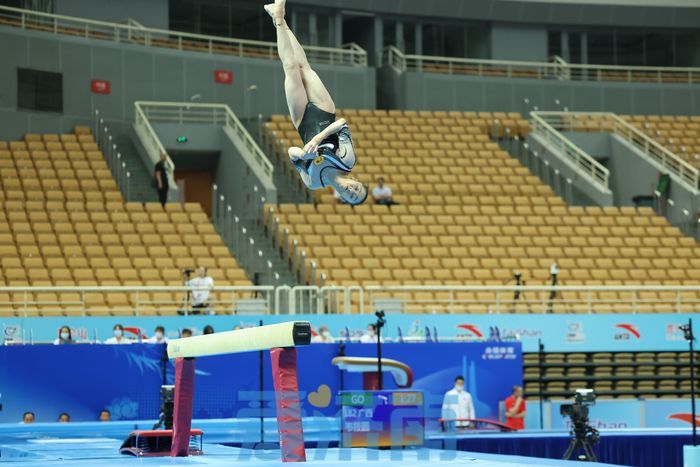 世界冠军韦筱圆亮相2023年全国体操锦标赛现场