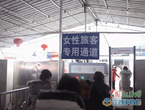 2018年春运期间,鹰潭火车站为提高旅客出行效率,减少旅客进站等待时间,在原有三个安检口的基础上,另外增设了女性旅客专用通道,为坚持“男不检女”原则,此安检通道的工作人员全部为女性。