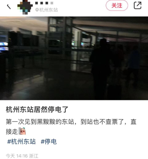 杭州火车东站停电:原因查明,现场紧急抢修