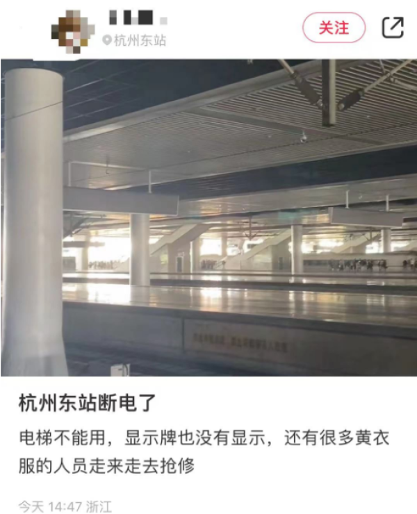 (原题:突发!杭州火车东站停电,现场紧急抢修中)