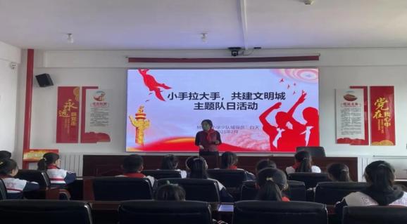 创城+“小手拉大手”活动组织全旗各中小学按照“立足学校,教育师生,带动家庭,辐射社会”的思路和主线,结合自身校情实际,广泛开展“小手拉大手·共建文明城”系列活动,培养教师、学生和广大家长讲文明的良好习惯,不断增强主动参与创城工作的自觉性,进一步提高全旗居民文明素质,努力营造全社会崇尚社会公德、践行文明美德的良好氛围。活动中,注重突出学生主体,通过激发学生的责任感,发挥好每个孩子的纽带作用,引导广大中小学生积极行动,普及文明知识,提高文明素质,切实做到文明有礼、文明出行、爱护环境、健康生活,带动广大家长积极参与创建全国文明城市,切实把教育活动从校内向家庭、社会延伸,实现“教育一个学生,带动一个家庭,影响一个社区,文明整个社会”的活动目的,最终在全社会形成全员参与的强大合力。