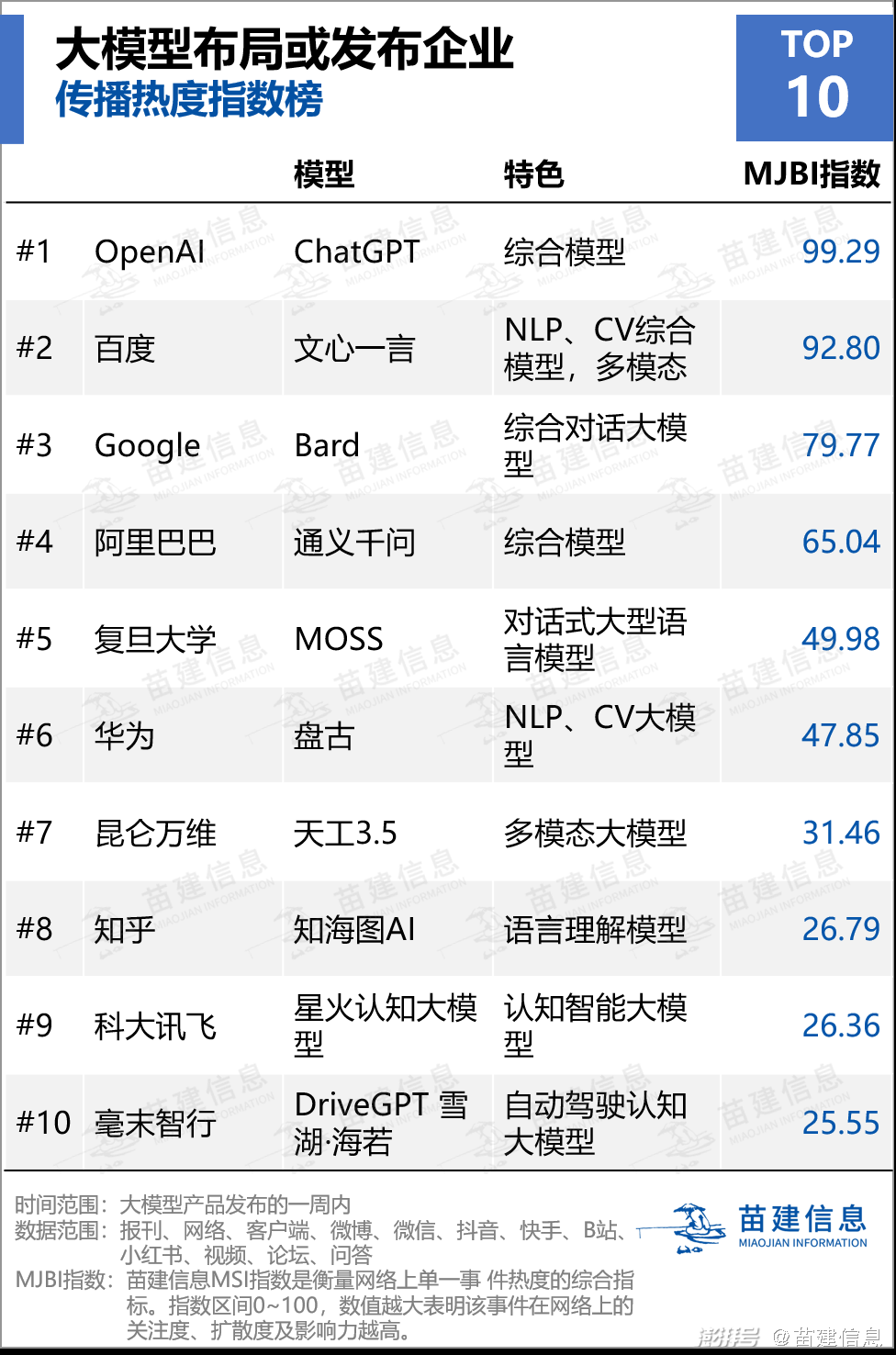 ChatGPT引领,国内AI大模型产品发布传播热度指数榜