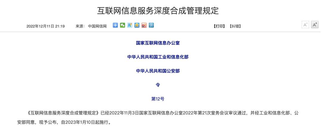 实际上,我国一些人工智能领域的专门法规也已有规定。国家网信办等部门已经在2022年12月颁布《互联网信息服务深度合成管理规定》,用25条规定划定深度合成技术使用规范,包括不得利用深度合成服务侵犯他人合法权益等法律、应用程序分发平台应当落实上架审核、服务提供和技术支持者应当加强技术管理等规定。